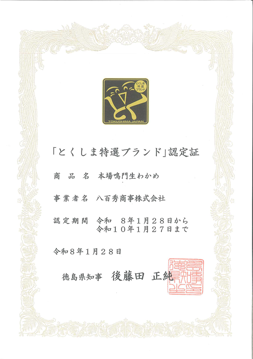 とくしま特選ブランドとは、徳島県産農林水産物の中から、贈答用として人に贈りたくなる付加価値の高い商品を徳島県知事が登録したものです。