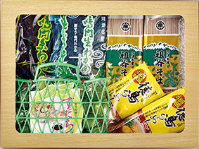 (本場鳴門糸わかめ・生わかめ・すだち・祖谷そば・徳島ラーメン)の詰め合わせセットです。