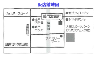 明治40年来、徳島市に流れる新町川の畔で営業を続けてまいりました店舗が徳島市新町西地区再開発区域となり、仮店舗を徳島県徳島市新町橋1-7 さくらまビル2Fと徳島県鳴門市撫養町立岩字七枚82の2箇所で営業しておりましたが、この度徳島県鳴門市撫養町立岩字七枚82に集約することといたしました。